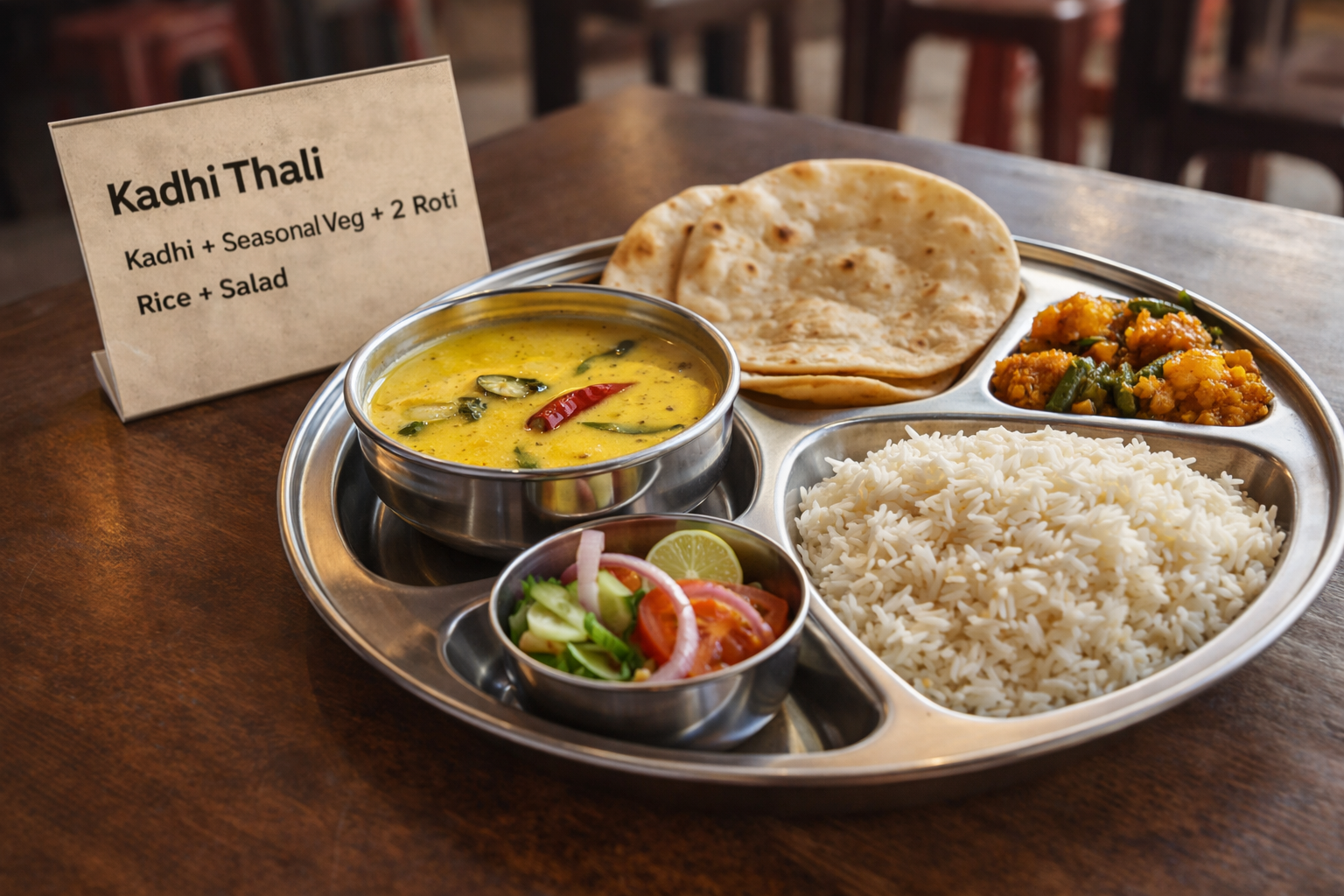 Enjoy a delicious Kadhi Thali, taste the authentic flavors of India in every bite 💛