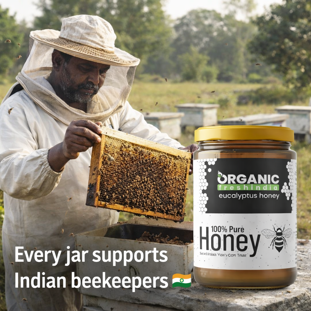 #PureHoney #IndianBeekeepers #SupportLocal #RawHoney #NaturalHoney #FarmToHome #SustainableLiving #HealthyIndia #HoneyLovers #EthicalFood #OrganicLiving #MadeInIndia #OrganicFreshIndia #OFI #OrganicFreshIndia